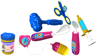 Giúp bé làm quen với bộ đồ nghề dùng cho bác sĩ.